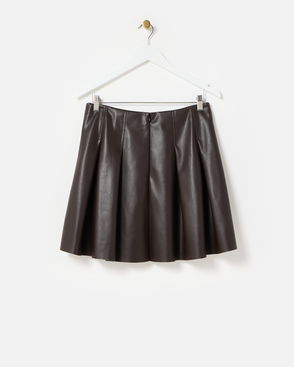 Chocolate Brown Faux Leather Pleated Mini Skirt