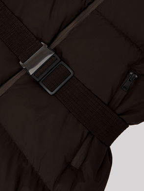 Belted Longline Hooded Puffer Coat In Chocolate Brown