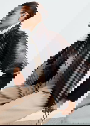 Faux Fur-Trim Wool-Blend Reefer Coat
