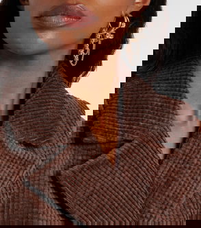 Hybrid Quilted Zip-Through Knit Jacket In Chocolate Brown