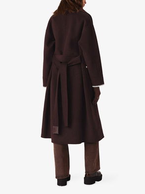 Wool Maxi Belted Trench Coat With Side Splits In Brown
