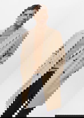 Wool-Blend Internal-Gilet Overcoat In Light Brown
