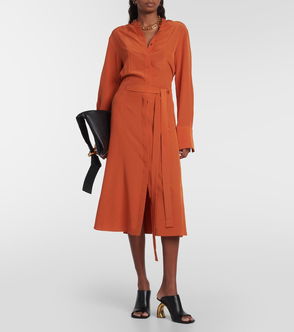 Belted Pleated Printed Satin-twill And Chiffon Midi Dress