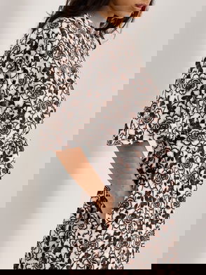 Brown Scalloped Broderie Mini T-Shirt Dress