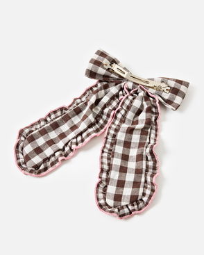 Hettie Brown Checked Resin Bow Hair Clips Set Of Two