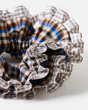 Lonnie Brown & Blue Gingham Frill Large Scrunchie