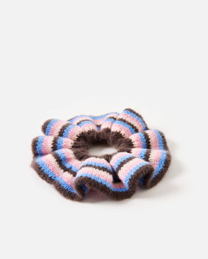 Romi Brown & Blue Striped Knitted Large Scrunchie