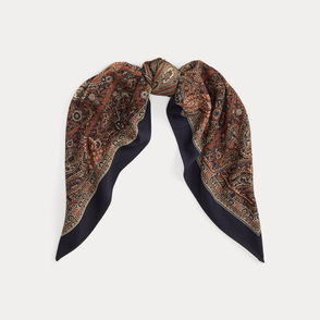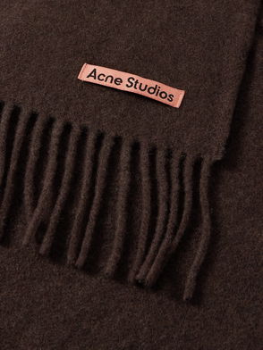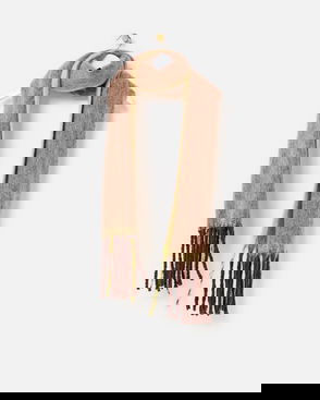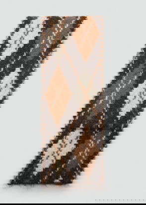 Brown Checked Cherry Motif Midweight Tassel Scarf