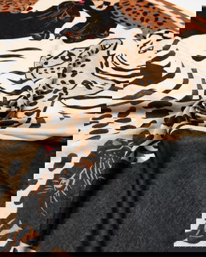 Brown Animal Print & Chequerboard Pleated Lightweight Scarf
