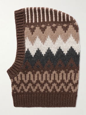 Monogram-Pattern Fringed-Trim Wool Knitted Scarf