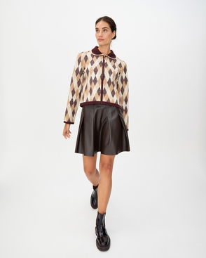 Wool Mini Skirt In Brown Check