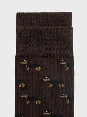 Chocolate Brown & Leopard Print Striped Sporty Ankle Socks