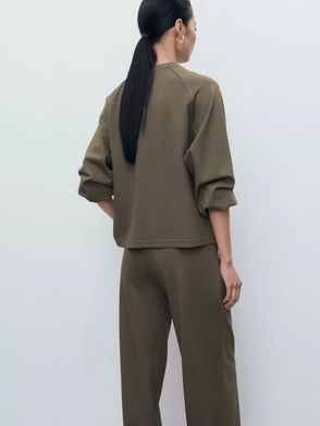 Shirt With Cinch Waist And Volume Sleeves In Brown