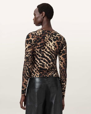 Soft Jersey Rib Long Sleeve Top In Mocha Brown