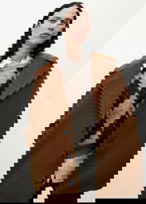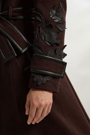 Brushed Wool Pu Mix Placed Floral Embroidery Applique Tailored Midi Coat