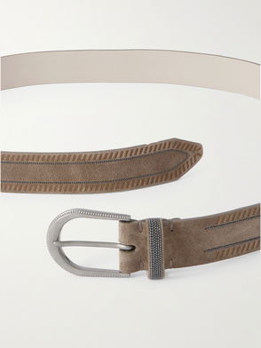 Bead-Embellished Leather-Trimmed Braided Cotton-Blend Belt