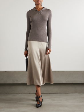 Organza-Trimmed Cotton-Blend Midi Wrap Skirt