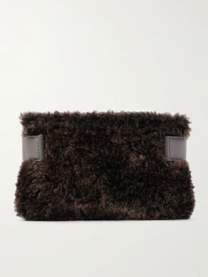 Bead-Embellished Leather-Trimmed Suede Clutch