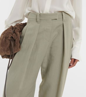 Cropped Pleated Hemp And Linen-Blend Straight-Leg Pants