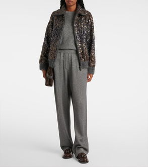 Wool And Cashmere Flannel Wide-Leg Pants