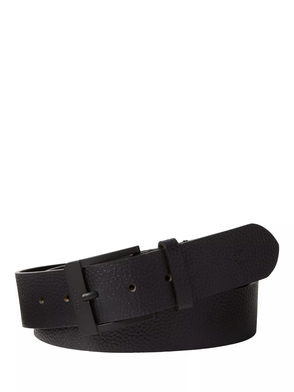 Double Buckle Leather Belt, Black/Tumbled Deep