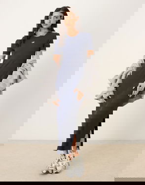 Jeans Short Sleeve Logo Rib Midi Dress In Navy