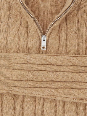 13-14 Yrs Wool-Blend Half-Zip Cable Knit Jumper In Camel Melange