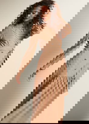 VIVERE Nova Nipped Waist Shirt Dress, Camel