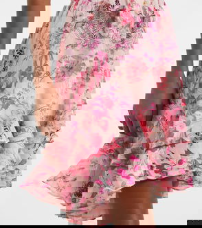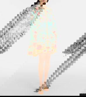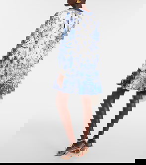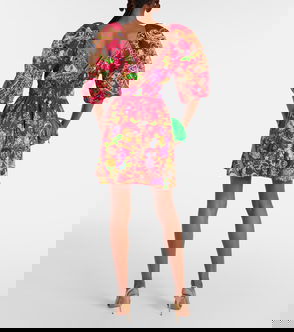 Floral-appliqué Gathered Silk Crêpe Minidress