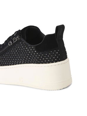 Florencia Lizard Embossed Lace Up Trainers, Black