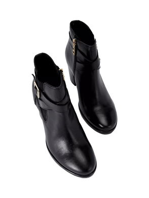 Strap Buckle Leather Ankle Boots