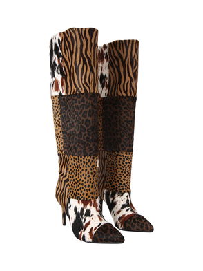Amore Calf Hair Leather Knee High Boots, Brown/Multi