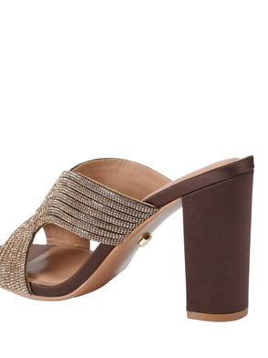 Paparazzi Crystal Embellished Block Heel Sandals, Brown