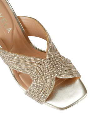 Paparazzi Crystal Embellished Block Heel Sandals, Gold