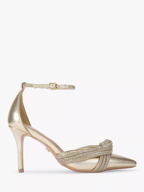 Arielle Crystal Embellished Knot Metallic Heeled Courts, Silver