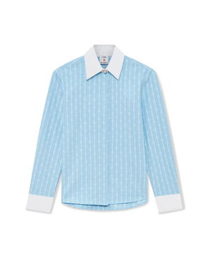 Jacquard Gradient Silk Long Sleeve Shirt In Blue, Size XS By