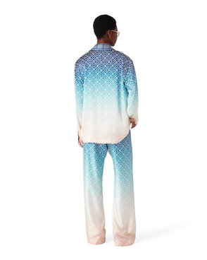 Jacquard Gradient Long Sleeve Silk Shirt In Blue, Size Small By