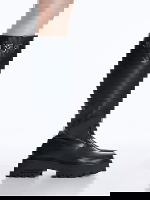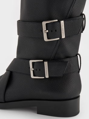 Robbie Side-Buckle Block-Heel Knee-High Boots
