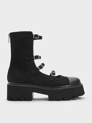 Celia Faux Suede Buckled Multi-Strap Chunky Calf Boots