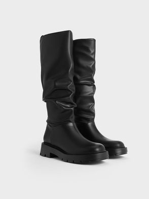 Stitch-Trim Platform Mid-Calf Chelsea Boots