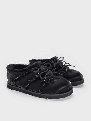Crinkle-Effect Lace-Up Bow Ballet Flats