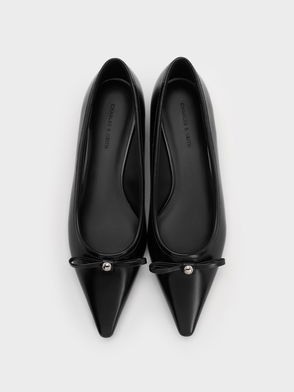 Bow Metallic-Accent Pointed-Toe Ballet Flats