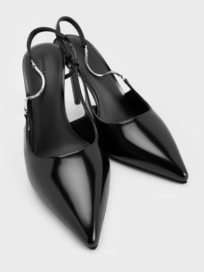 Chain-Strap Pointed-Toe Slingback Pumps