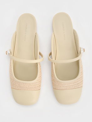 Aeryn Raffia Pearl-Embellished Slip-On Mary Janes