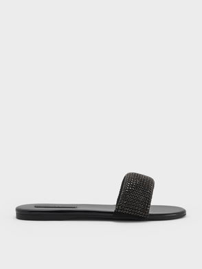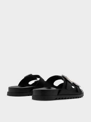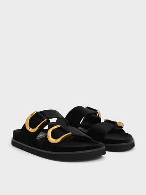Recycled Polyester Gem-Buckle Double-Strap Sandals