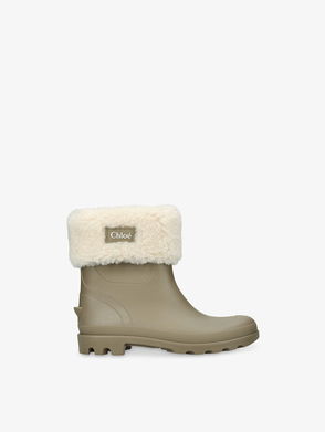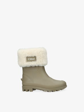 Kids' Logo-Patch Faux-Shearling And Rubber Boots