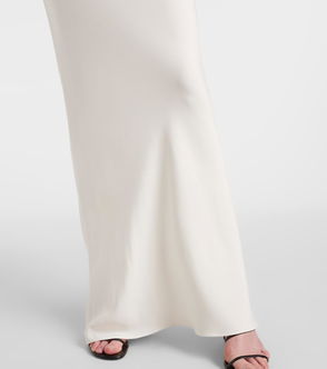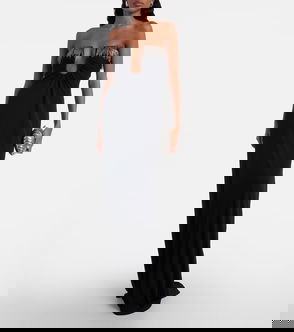 Arced Palm Strapless Gathered Jersey Maxi Dress
