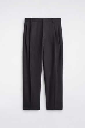 PLEATED WOOL STRAIGHT-LEG TROUSERS