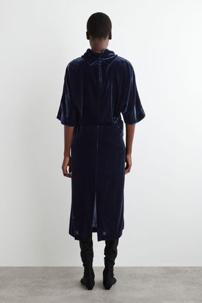 DRAPED-NECK VELVET MIDI DRESS
