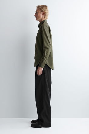 COLLARLESS SILK-BLEND V-NECK SHIRT
